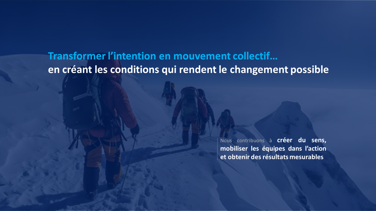 Miser sur l’intelligence qui est chez vous car vos collaborateurs sont les mieux placés pour imaginer les solutions les plus adaptées — nous aidons à cette prise de conscience et à l’expression de la créativité.